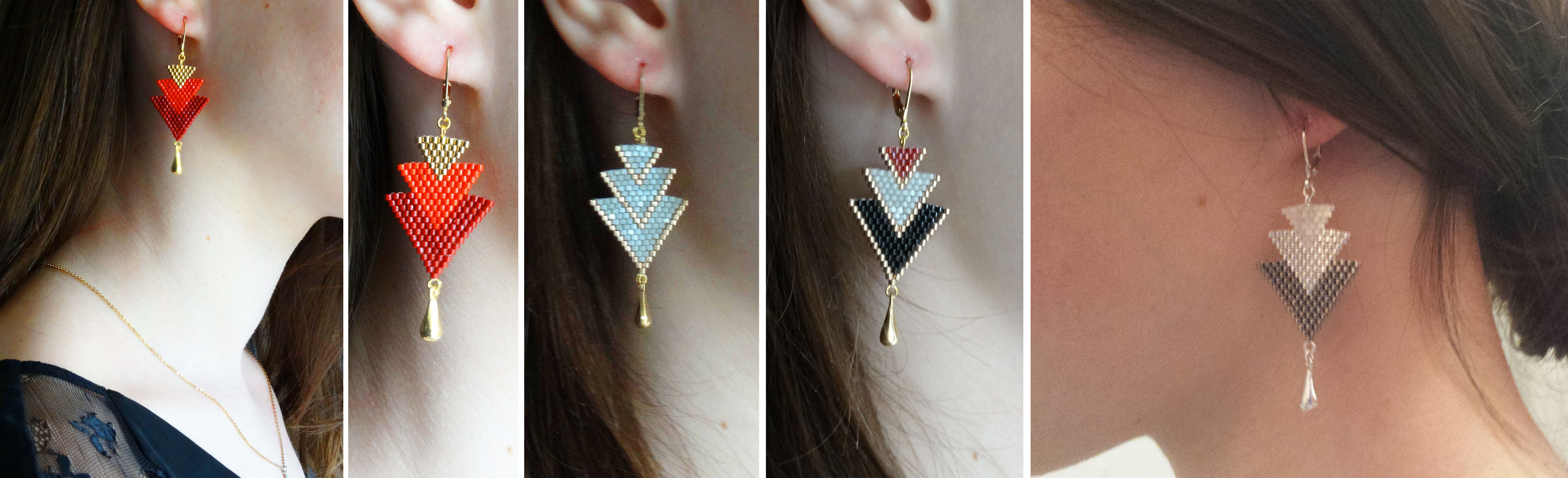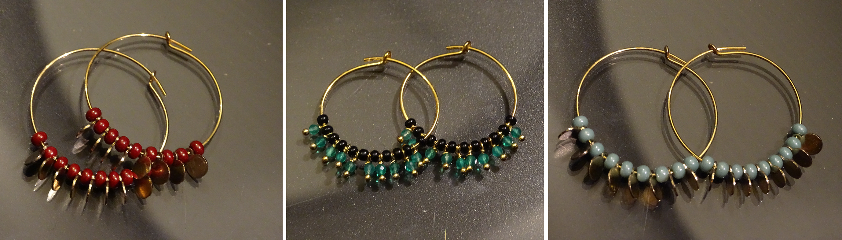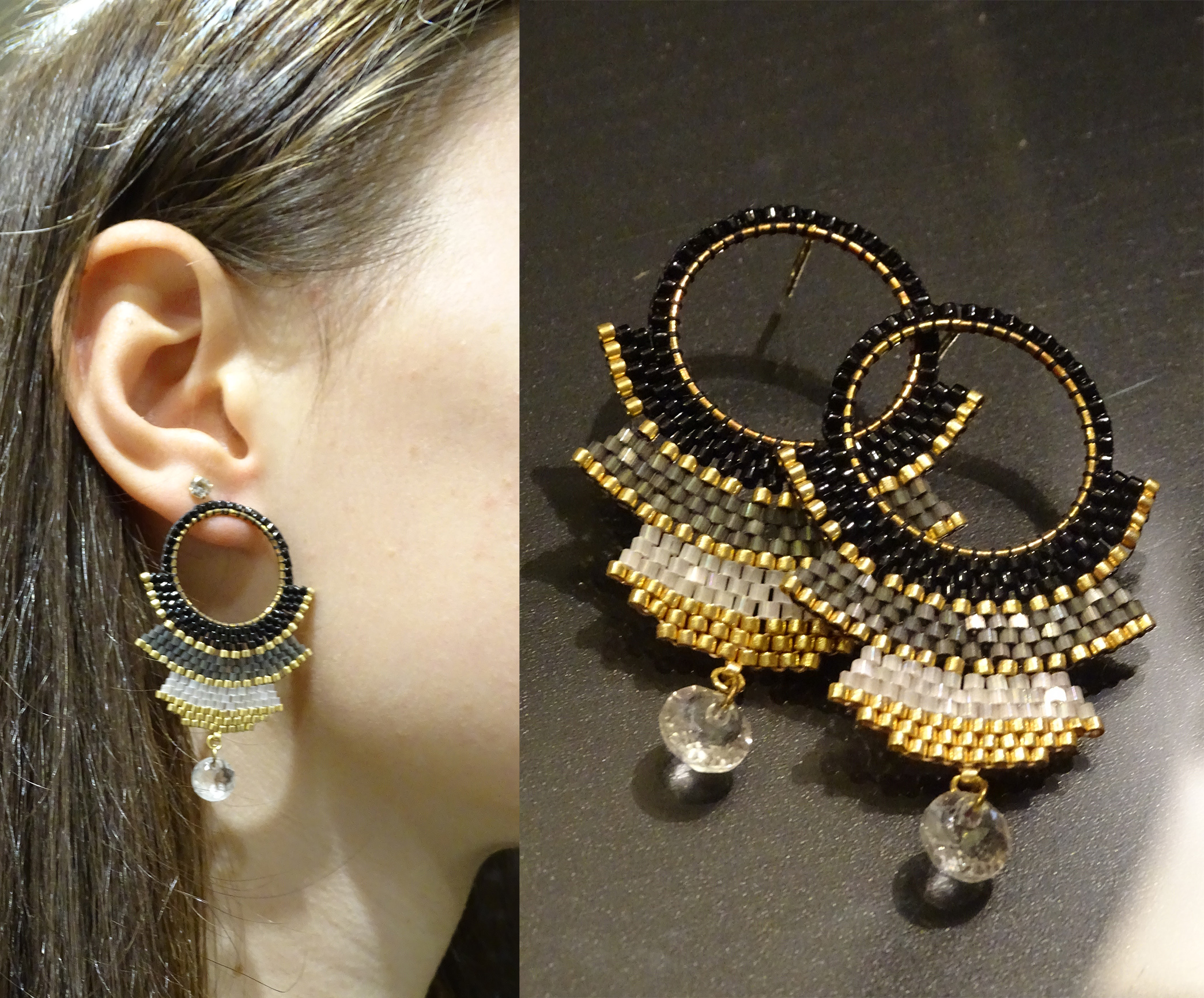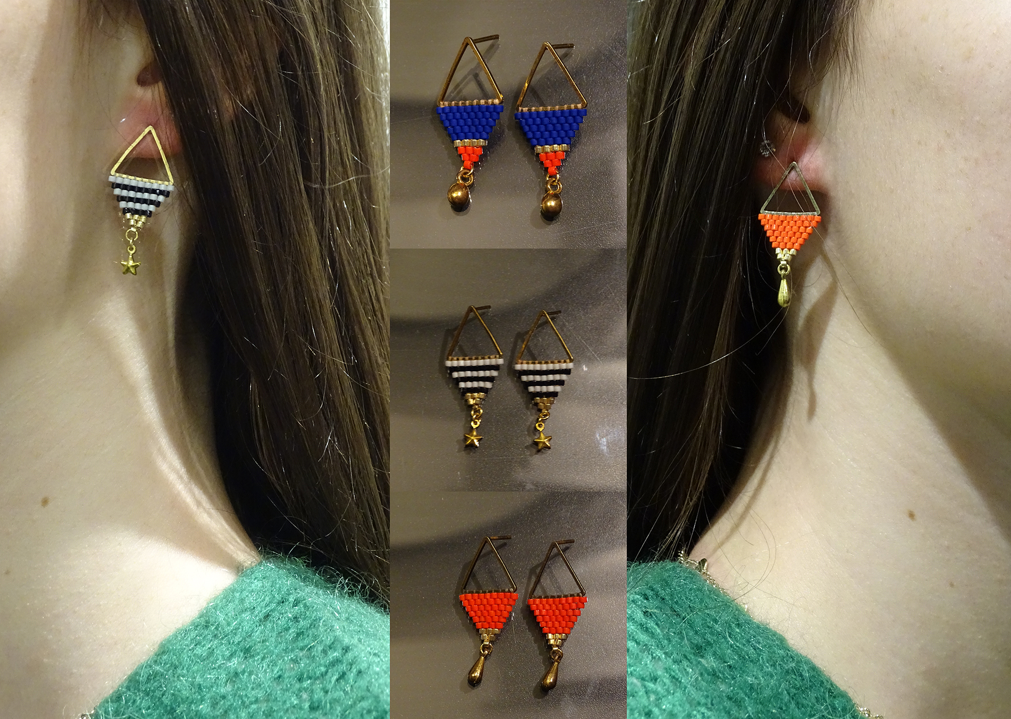 BO anneaux fixes, pampilles en tissage de perles et chaines, finitions dorées – 25€Bo en tissage de perles, finitions dorées – 30€BO 3 fleurs en tissage de perles, finitions dorées – 25€Bo en tissage de perles, finitions dorées – 30€BO franges inspirations africaines, finitions dorées – 25€Bo en tissage de perles, finitions dorées – 25€BO pampilles en tissage de perles, camaieu au choix, finitions dorées – 22€BO Triangles et pampilles, coloris au choix – 18€Paire de BO en plumes de coq ou pintade – 18€Larges créoles avec tissage de perles intérieur ou extérieur – 25€Pairede créoles avec perles et pampilles – 18€Paire de créoles tissées sur anneaux plaqué or, Couleurs au choix – 25€Paire de créoles tissées Etoile sur anneau plaqué or, couleurs au choix – 22€Paire de Grandes Créoles, support doré ou argent , tissage de perles – 25€Créoles Tissées Dentelle – 30€Grandes Créoles Tissées – 30€Créoles à pompons Or/Bronze/Noir – 30€BO en tissage de perles tendance Africaine – 25€BO en tissage de perles Moutarde/Rouille/Brun/Bronze – 25€BO Géométriques en tissage de perles – 20€Paire de boucles d’oreille en perle Motif Africa Noir/Doré/Camel/Rouge/Crème/Bleu – 30€Paire de boucles d’oreille en perles Motif bicolore Noir/Doré – 25€BO en tissage de perles motif TRIANGLE différents coloris – 20€Paire de boucles d’oreille en perles Motif Frange Dégradé Blanc/Doré/Brun – 30€Paire de boucles d’oreille Plume Camaieu Bleu – 25€Paire de boucles d’oreille en perles Motif à pois Noir/Argent ou Vert/Doré – 20€Paire de boucles d’oreille Chevrons Bordeaux/Blanc/Noir/Doré – 25€Paire de boucles d’oreille Charleston Noir/Doré – 25€BO en perles et fil de métal différents coloris – 30€