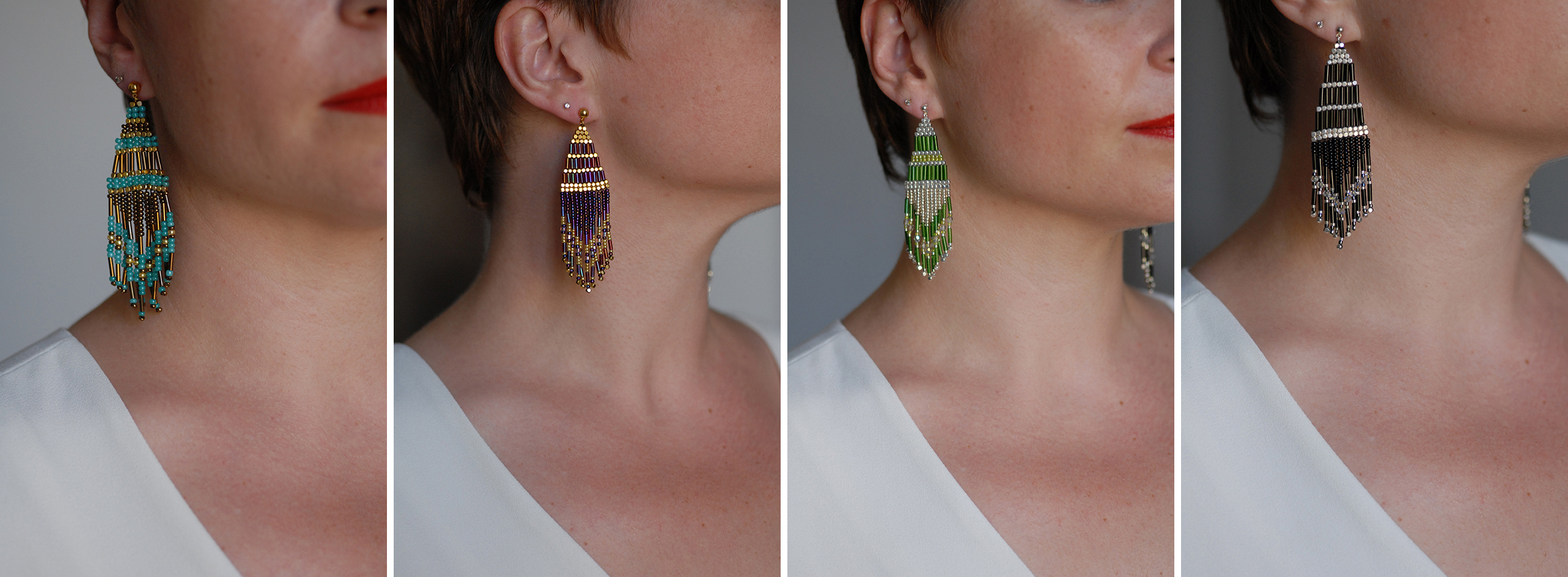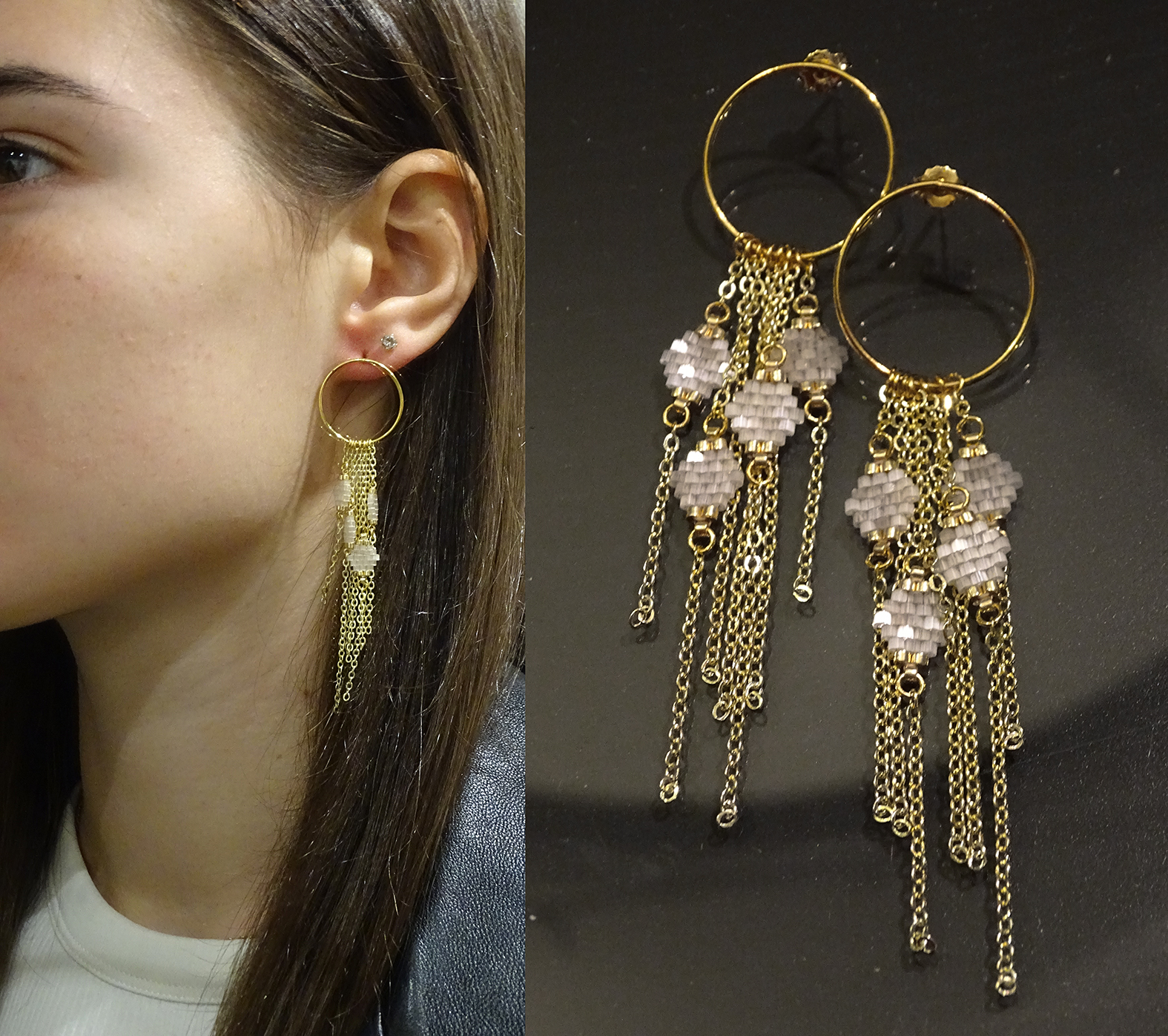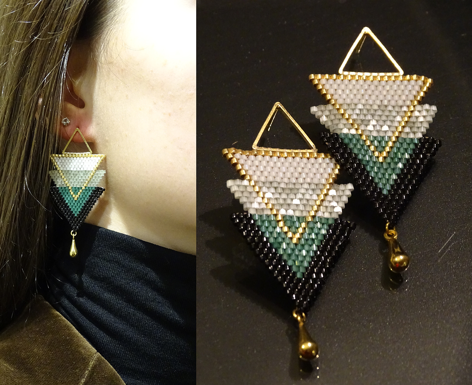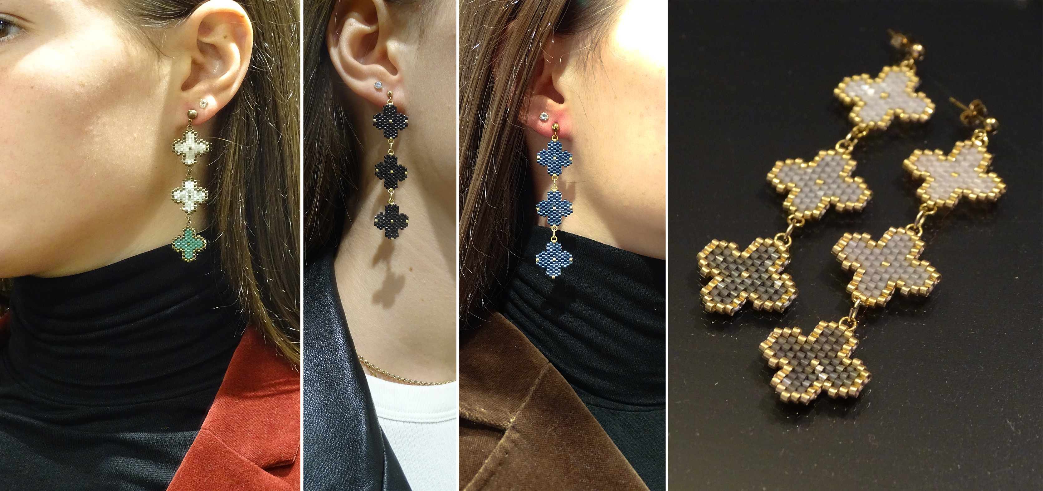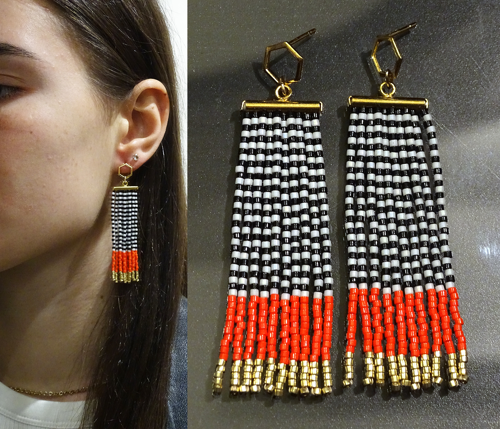BO anneaux fixes, pampilles en tissage de perles et chaines, finitions dorées – 25€Bo en tissage de perles, finitions dorées – 30€BO 3 fleurs en tissage de perles, finitions dorées – 25€Bo en tissage de perles, finitions dorées – 30€BO franges inspirations africaines, finitions dorées – 25€Bo en tissage de perles, finitions dorées – 25€BO pampilles en tissage de perles, camaieu au choix, finitions dorées – 22€BO Triangles et pampilles, coloris au choix – 18€Paire de BO en plumes de coq ou pintade – 18€Larges créoles avec tissage de perles intérieur ou extérieur – 25€Pairede créoles avec perles et pampilles – 18€Paire de créoles tissées sur anneaux plaqué or, Couleurs au choix – 25€Paire de créoles tissées Etoile sur anneau plaqué or, couleurs au choix – 22€Paire de Grandes Créoles, support doré ou argent , tissage de perles – 25€Créoles Tissées Dentelle – 30€Grandes Créoles Tissées – 30€Créoles à pompons Or/Bronze/Noir – 30€BO en tissage de perles tendance Africaine – 25€BO en tissage de perles Moutarde/Rouille/Brun/Bronze – 25€BO Géométriques en tissage de perles – 20€Paire de boucles d’oreille en perle Motif Africa Noir/Doré/Camel/Rouge/Crème/Bleu – 30€Paire de boucles d’oreille en perles Motif bicolore Noir/Doré – 25€BO en tissage de perles motif TRIANGLE différents coloris – 20€Paire de boucles d’oreille en perles Motif Frange Dégradé Blanc/Doré/Brun – 30€Paire de boucles d’oreille Plume Camaieu Bleu – 25€Paire de boucles d’oreille en perles Motif à pois Noir/Argent ou Vert/Doré – 20€Paire de boucles d’oreille Chevrons Bordeaux/Blanc/Noir/Doré – 25€Paire de boucles d’oreille Charleston Noir/Doré – 25€BO en perles et fil de métal différents coloris – 30€