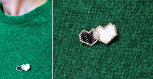Broche Coeurs Noir/Blanc/Doré – 12€