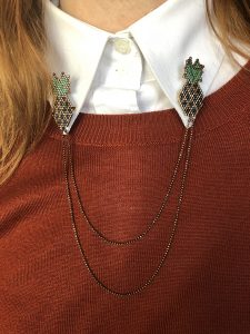 Double Broche de col Ananas Noir/Vert/Bronze – 20€