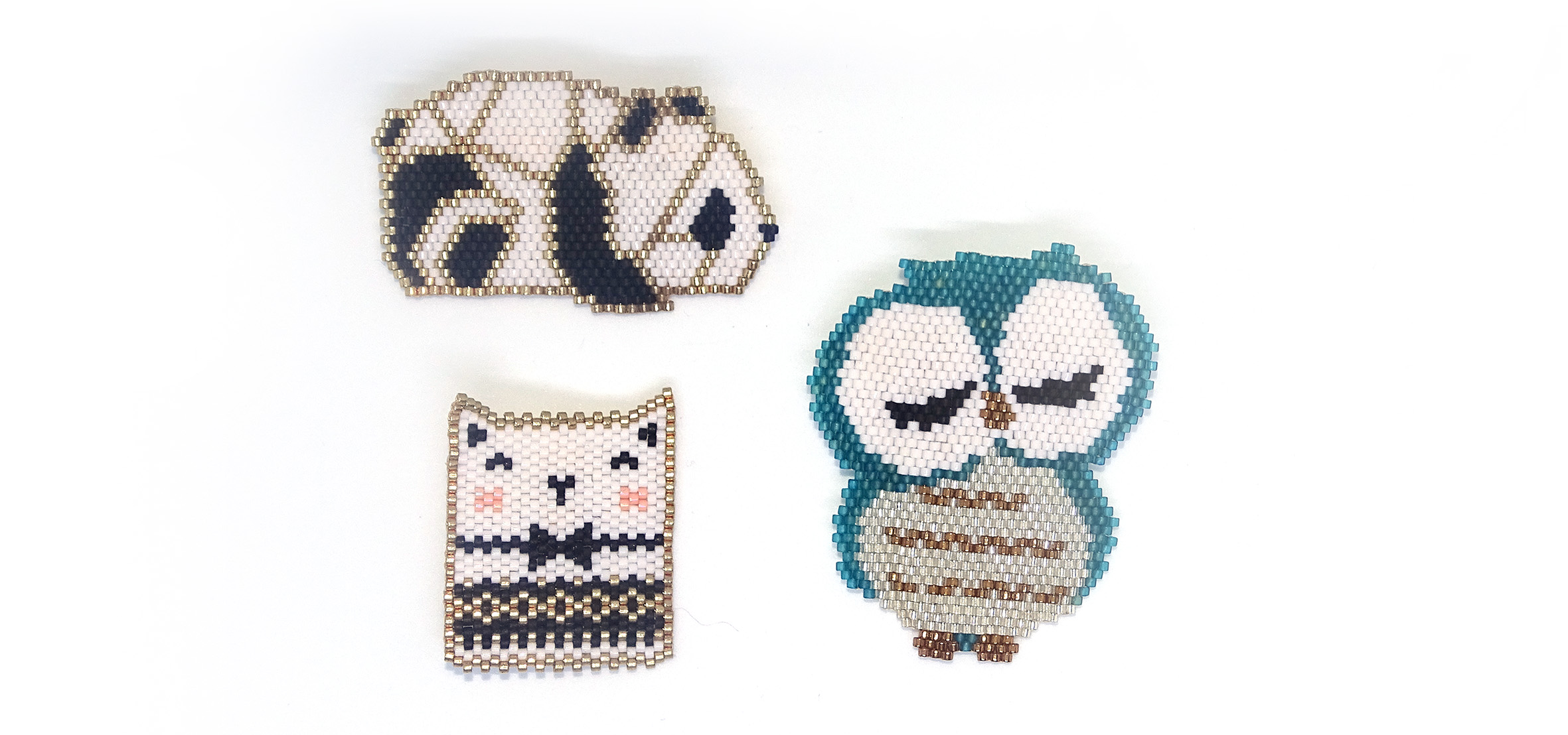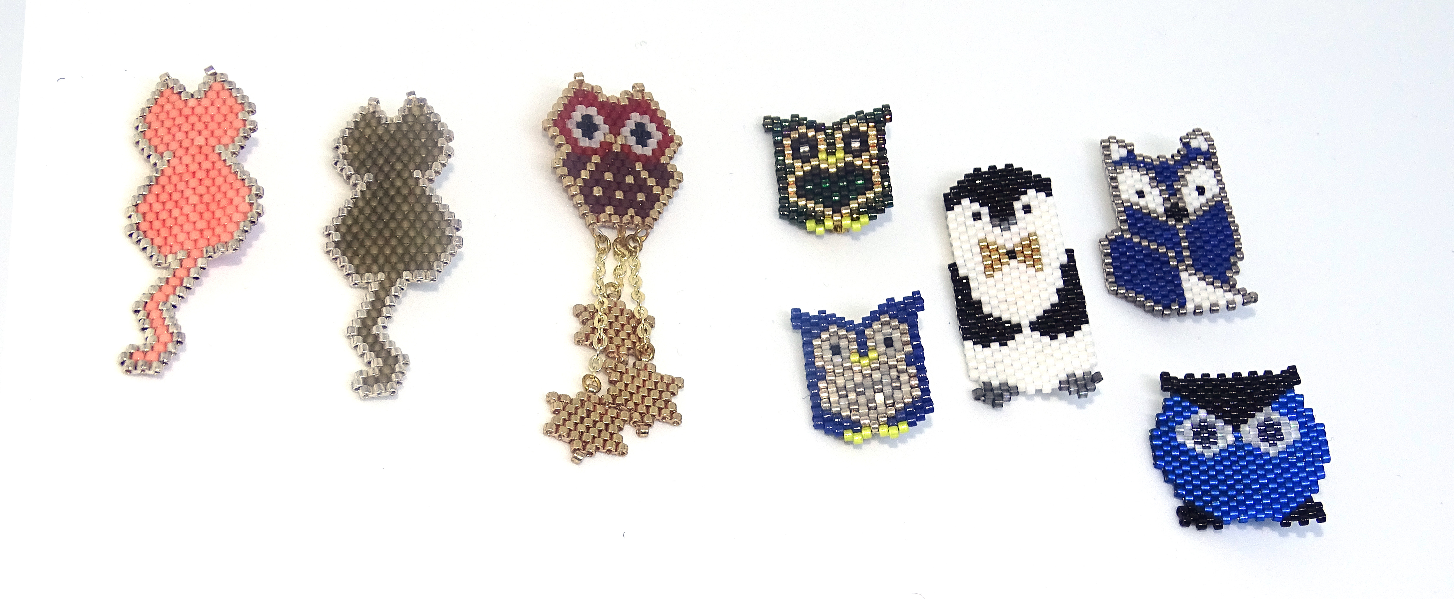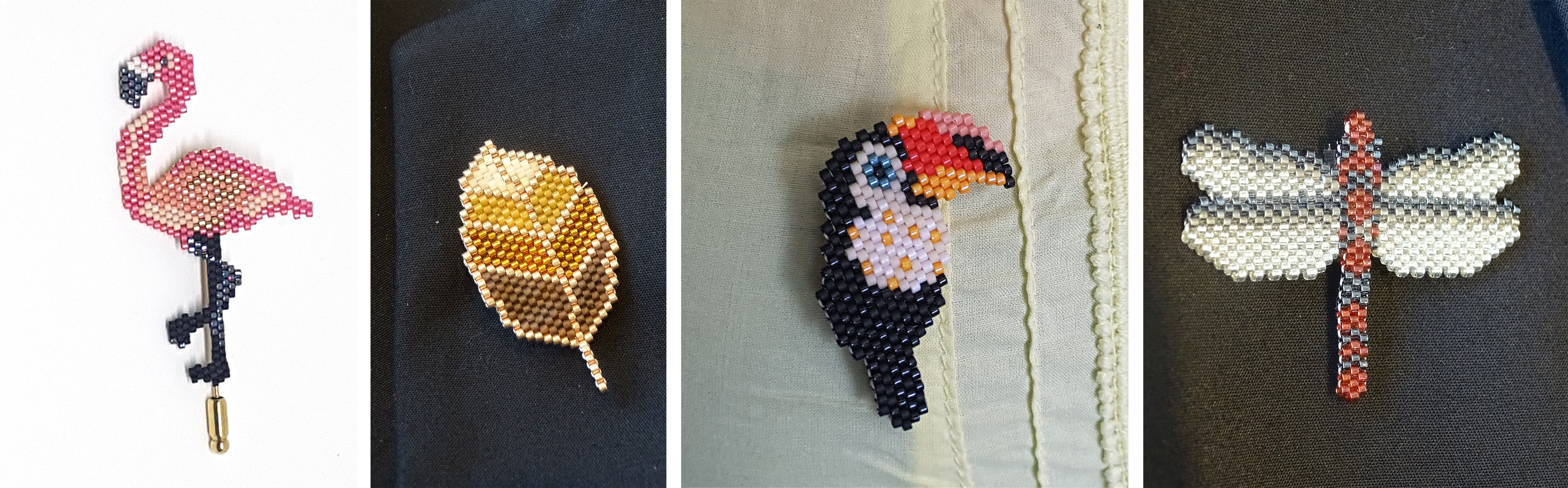 Broches en tissage de perles – 12€, 15€ et 18€ selon la taille
